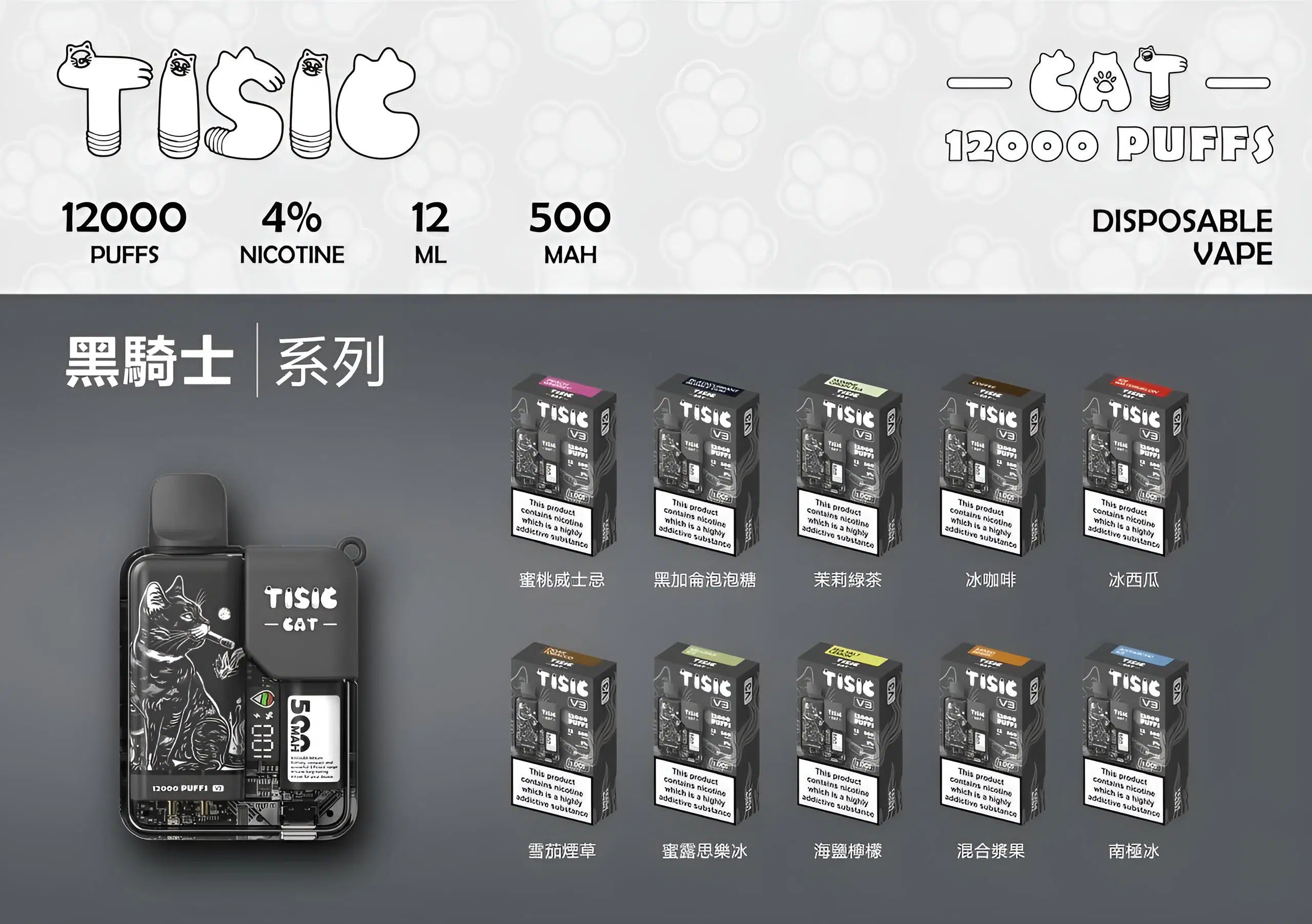 TISIC 貓咪電子菸 12000口 黑騎士系列